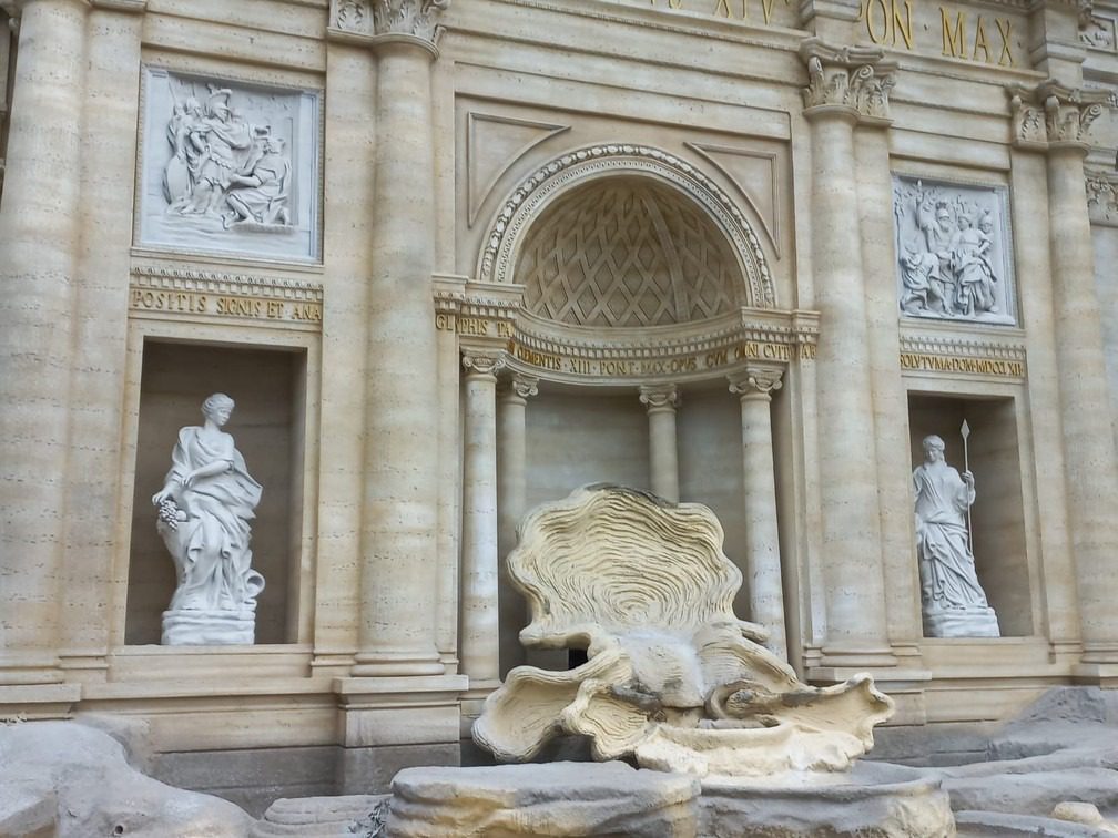 A Fontana di Trevi original, inaugurada em 1735, é uma obra de Nicola Salvi, baseada em um projeto de Bernini, e se tornou a fonte mais célebre de Roma e uma das mais famosas e fotografadas do mundo. Ela possui 26 metros de altura e 20m de largura.