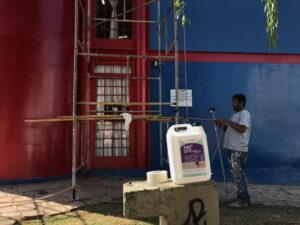 A tecnologia atua em escala microscópica, formando uma barreira funcional que reduz a aderência de tintas, fuligem e poluentes urbanos, sem comprometer cor, textura ou permeabilidade dos materiais. Essa camada protetiva possibilita a remoção facilitada de pichações e sujidades, minimizando intervenções abrasivas e ampliando a durabilidade das superfícies, em alinhamento com princípios de conservação preventiva, ciência aplicada e sustentabilidade.