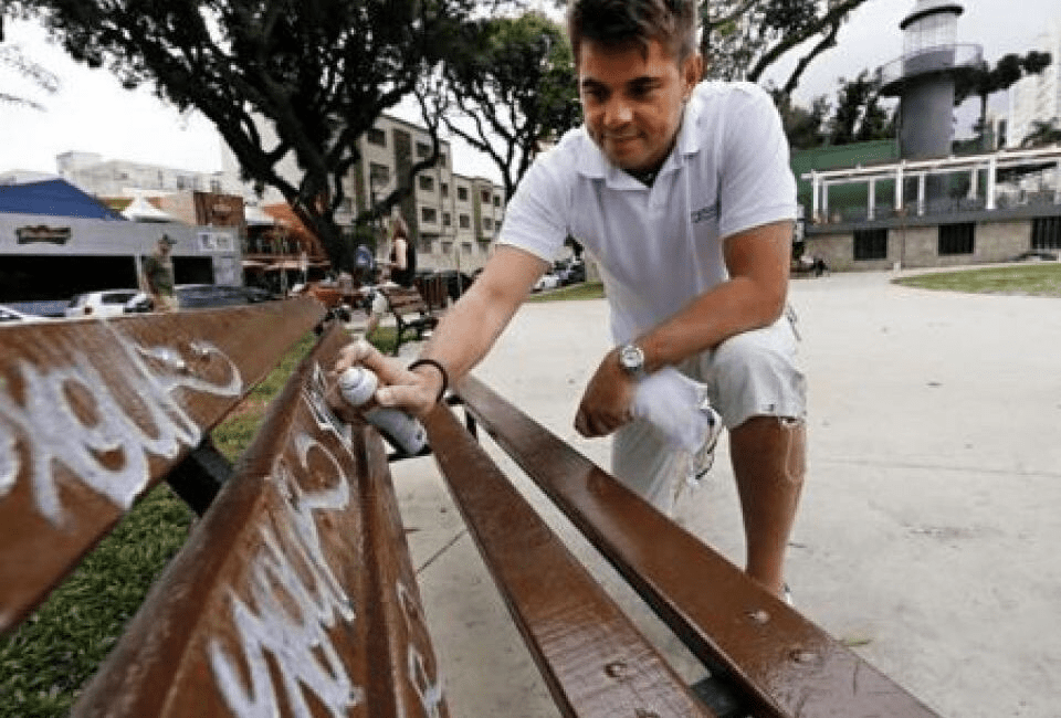 Além da aplicação na parede de pedra, a ação incluiu também a limpeza completa dos bancos pichados da praça, promovendo uma requalificação visual imediata e devolvendo à população um ambiente mais limpo e seguro.